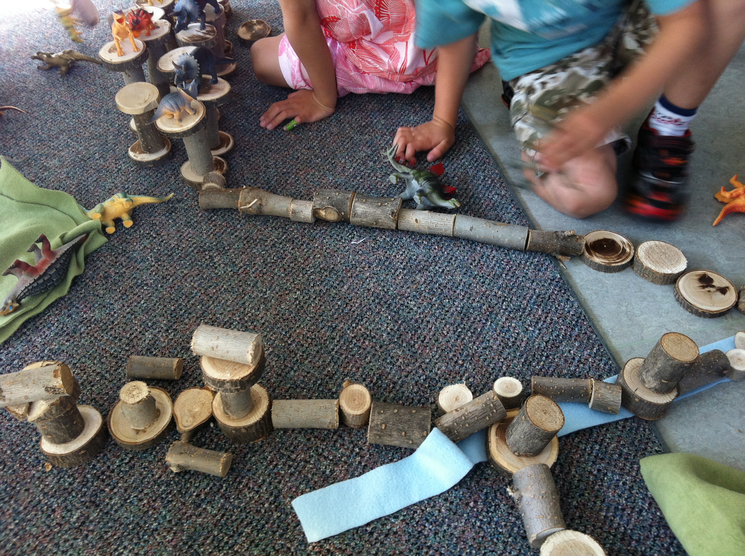 Next comes our carpet and big block area. Along the wall under the SmartBoard are 3 big buckets with our smaller wooden blocks and on the shelves under the windows are our big wooden blocks (The sign on the block left out shows they have been busy building McDonald’s this week!). The bench in the foreground stores bins for trains and cars, etc.