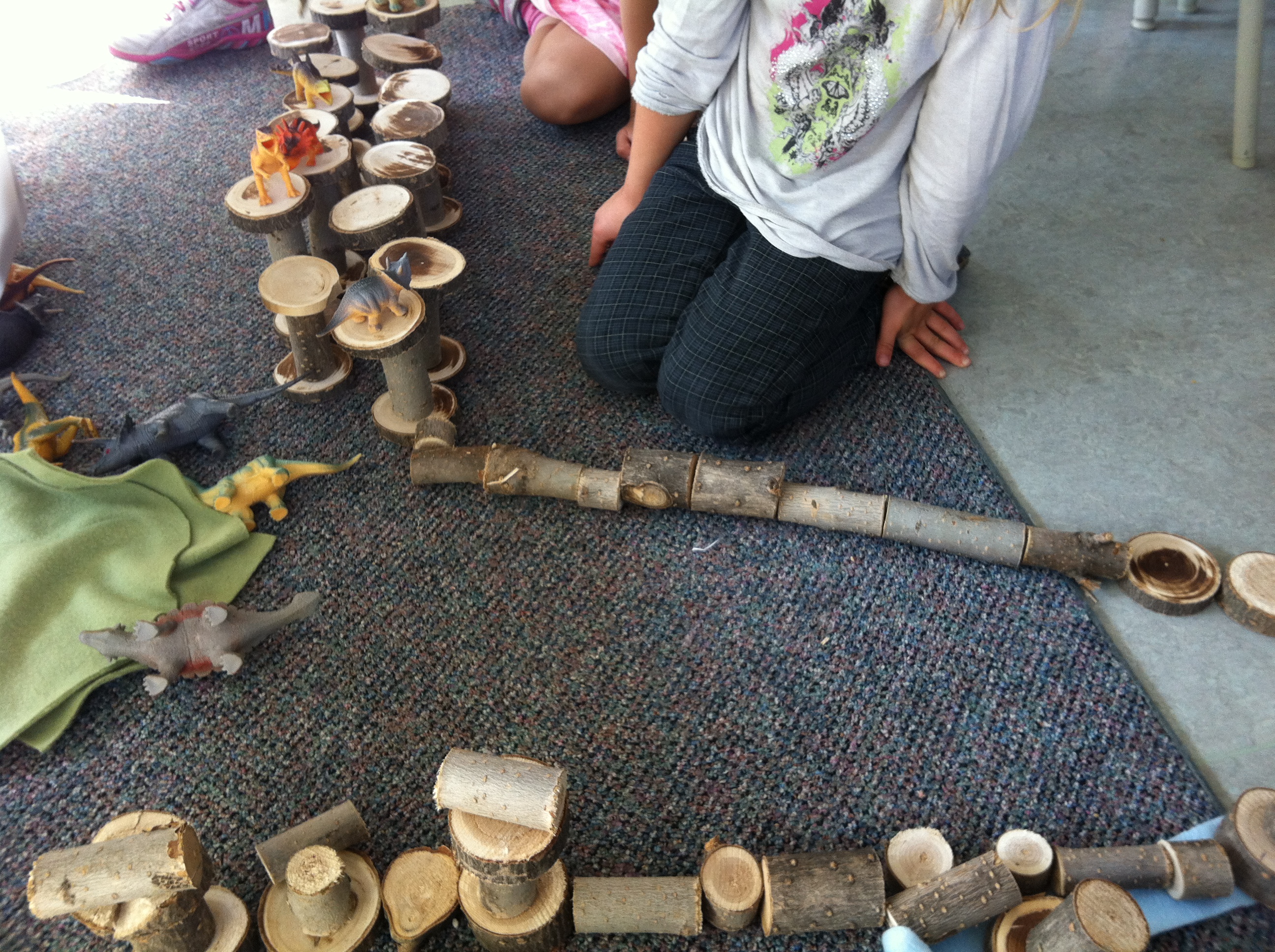 Behind the mirror shelf (pictured above), we have a little yellow table. Currently this is our “story-telling” area where students use puppets they have made (or other finger puppets) to retell stories we have been reading in class. Can you tell that their current favourite is “The Three Billy Goats Gruff”?