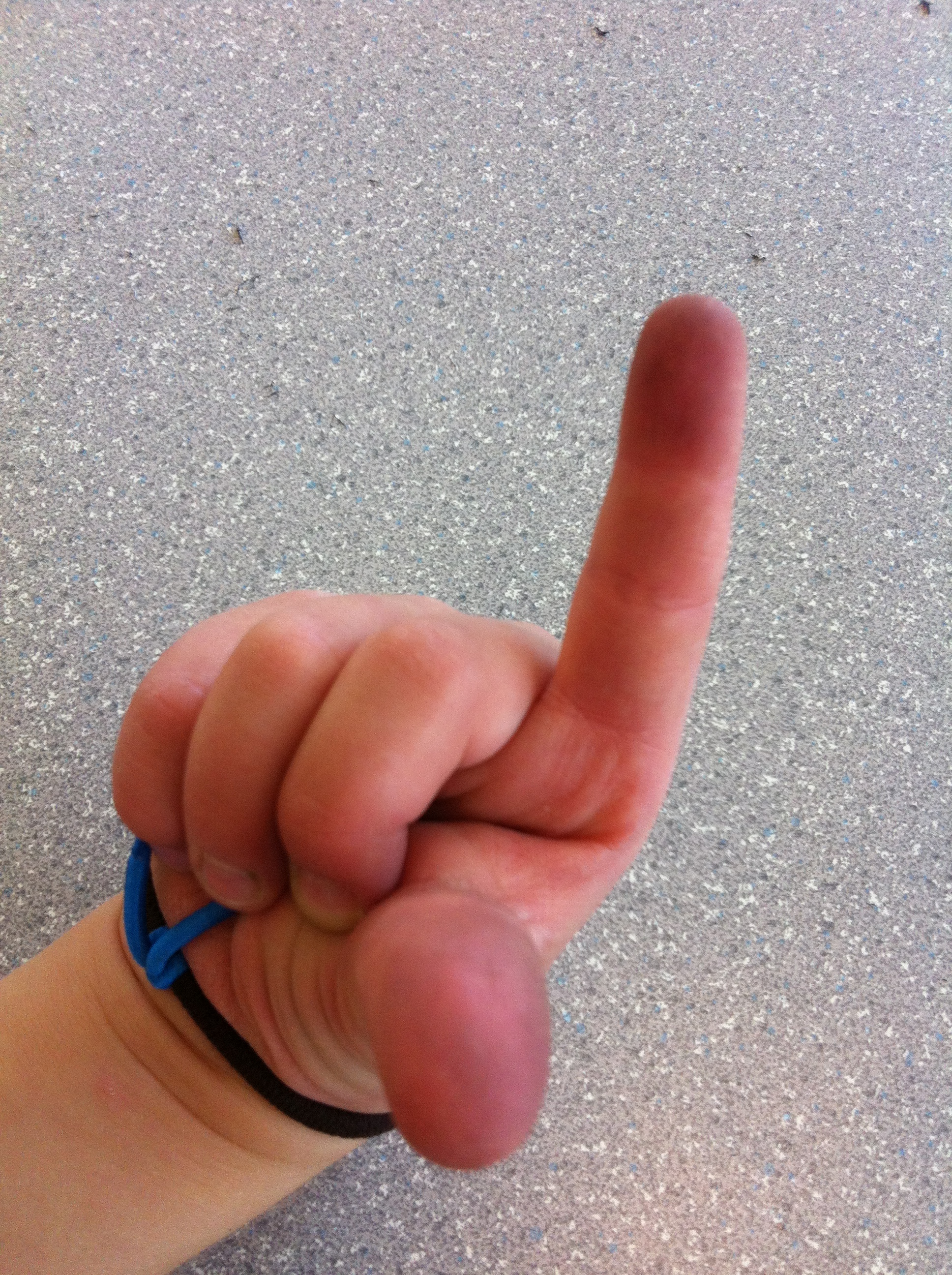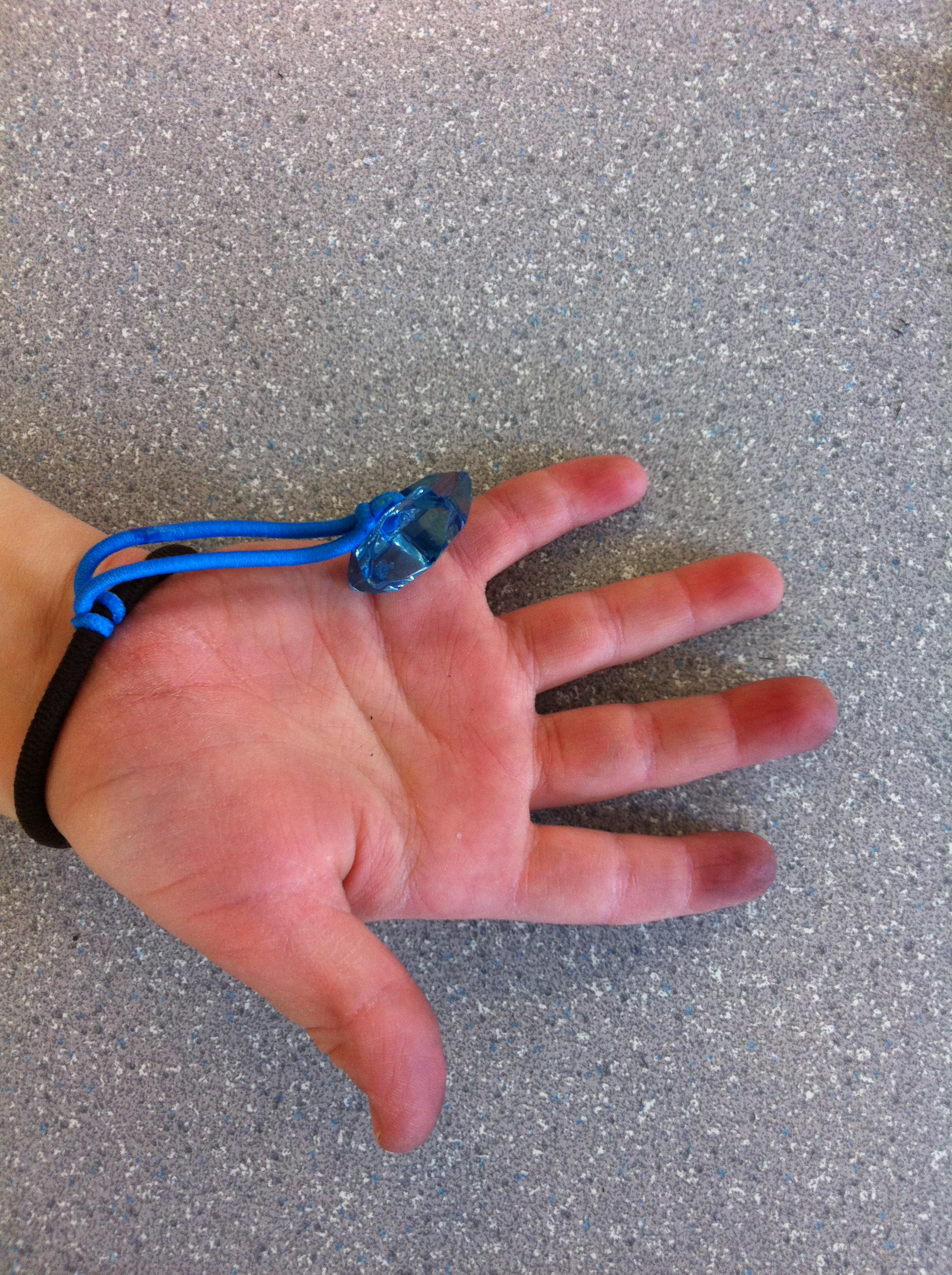 2. Have the child slide their dominant hand through the black elastic.